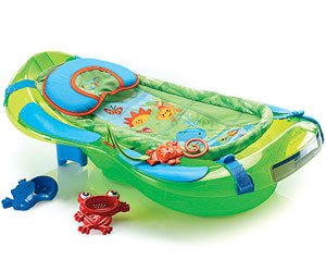Fisher-Price's Rainforest Bath Center comes with a newborn insert plus a toy frog and monkey.